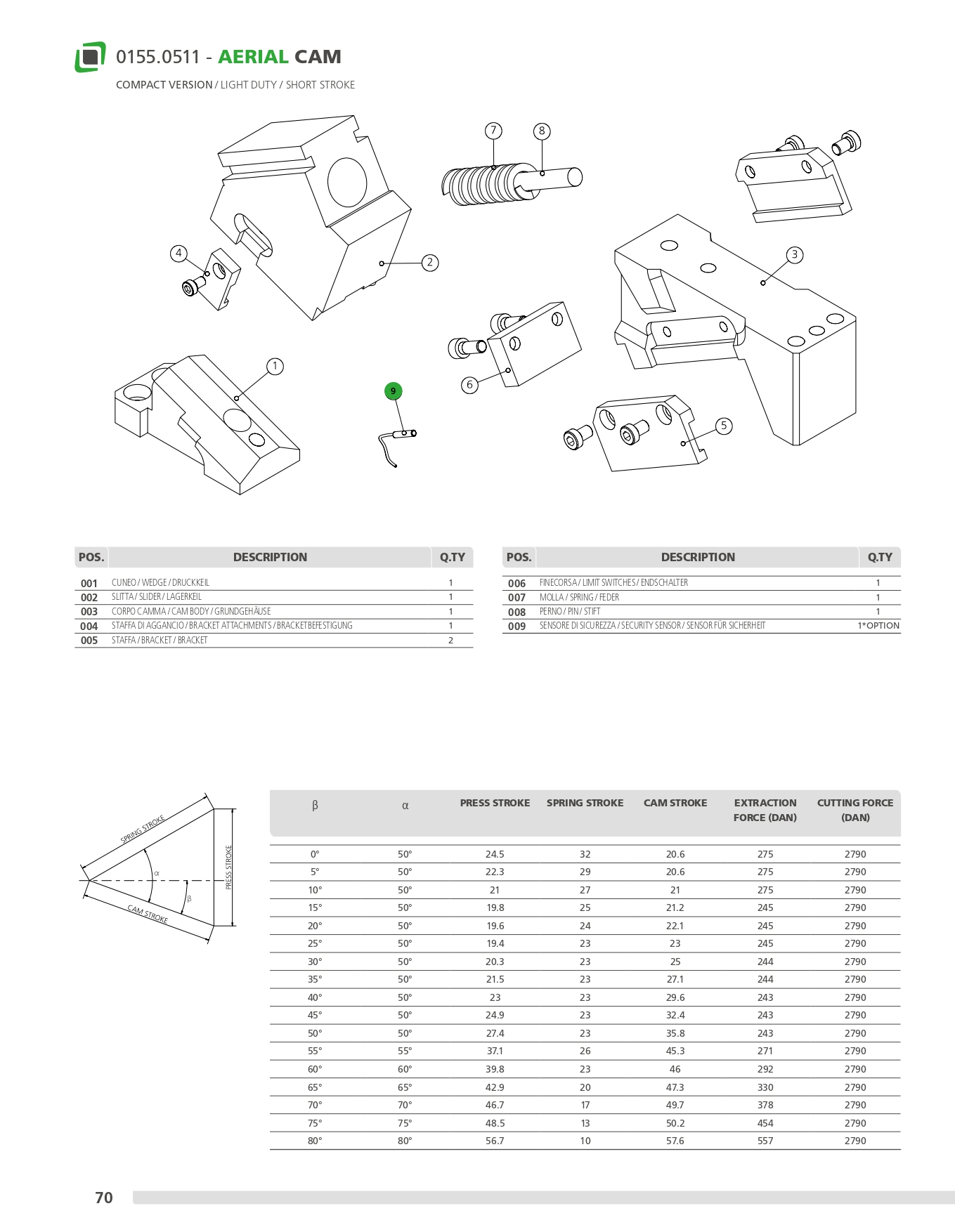 An der Stanzeinheit können je nach Bedarf Zubehör oder verschiedene Stahlsorten angebracht werden. Diese Nocke kann waagerecht oder von 0° bis 80° geneigt montiert werden.