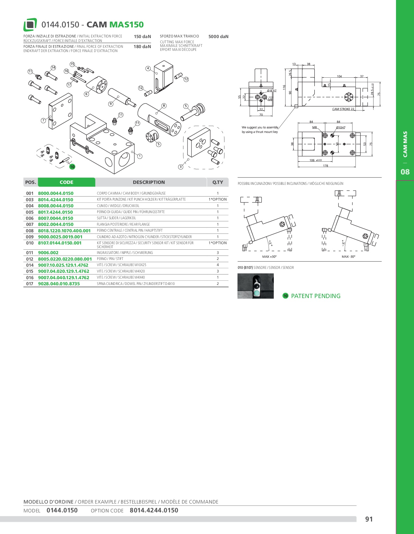 geneigt montiert werden. Mögliche Anwendungen: Stanzen, Biegen und Prägen.
