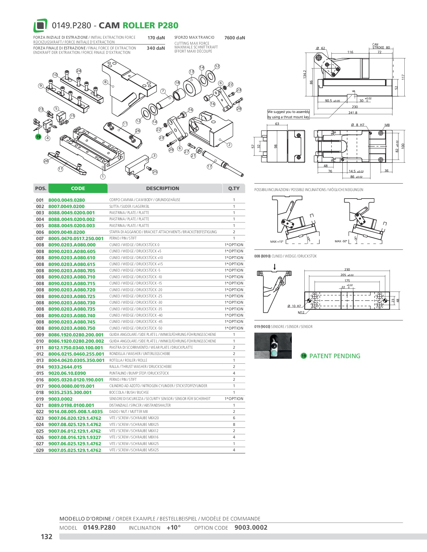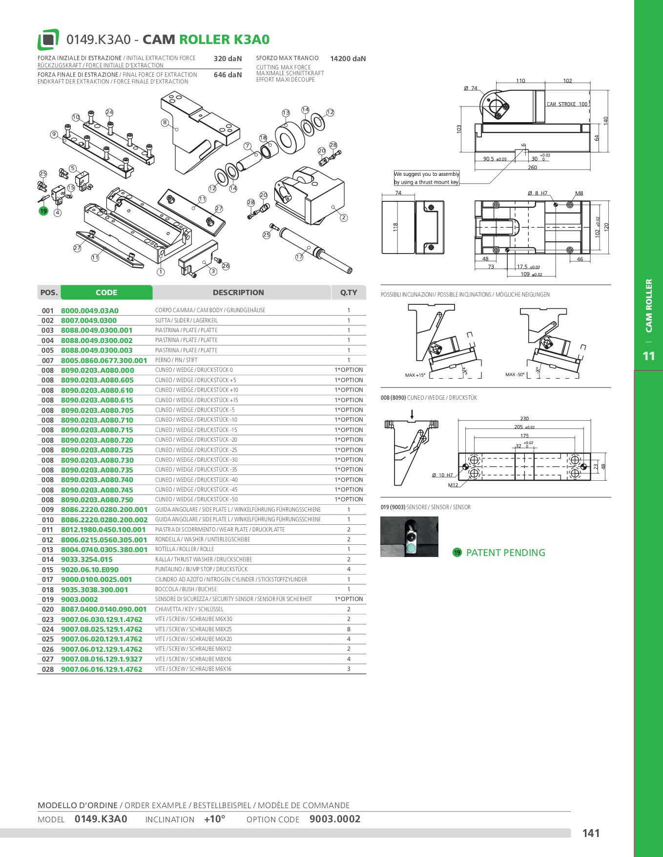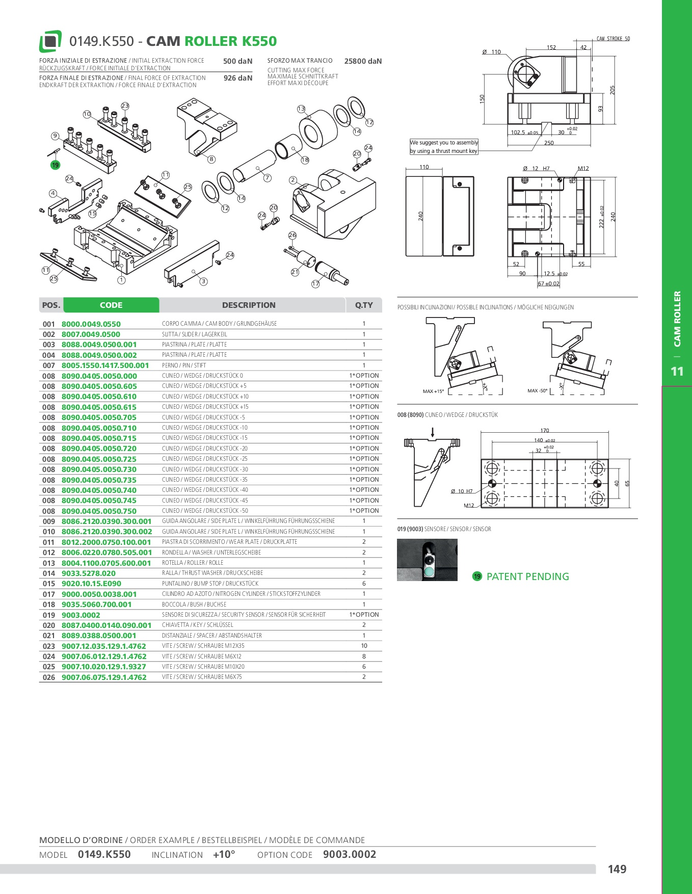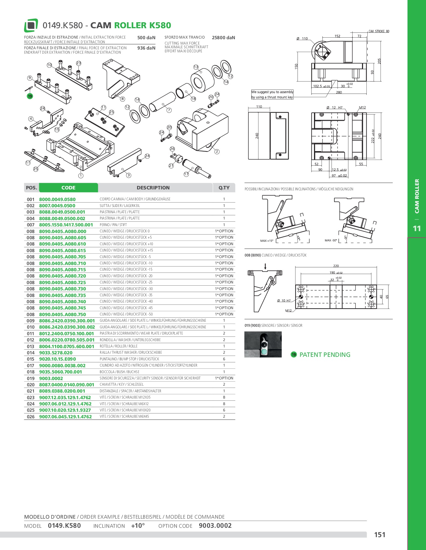 This cam has a long stroke and can be fitted horizontally or inclined. Means of application: generally suitable for shearing, drilling and bending work.