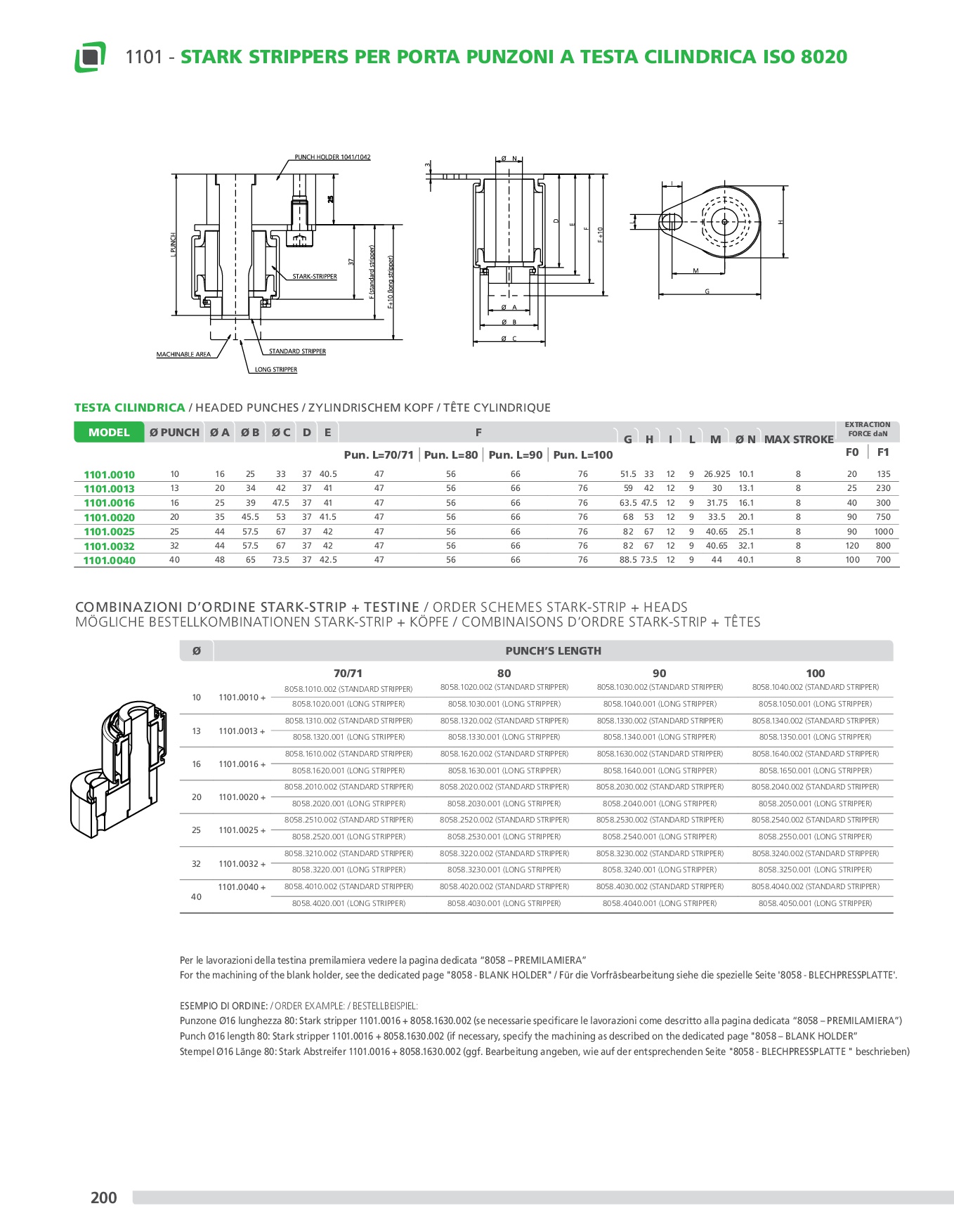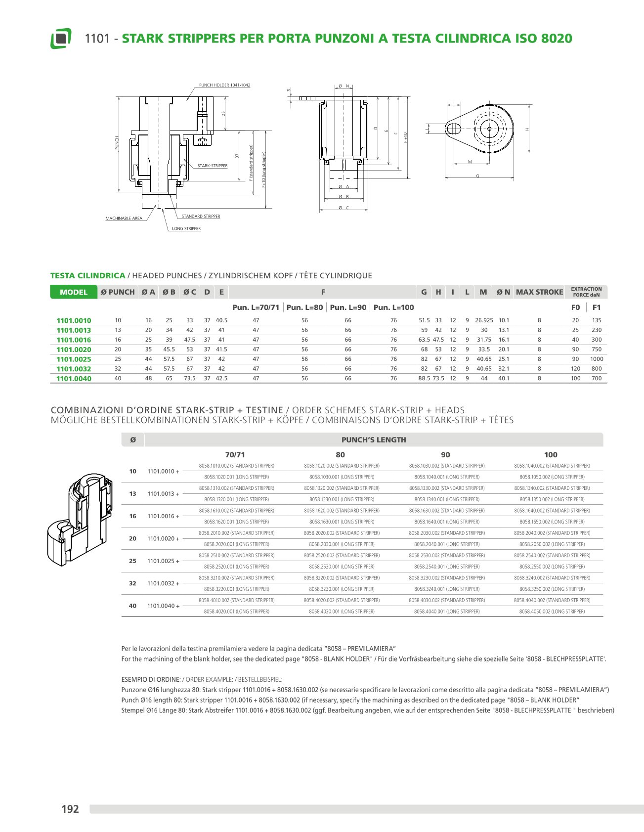 Stark strippers are designed to be mount directly to most industry standard retainers, for both Ballock (Light-Heavy Duty) and headed punches, which allow the extraction of the punch from the metal sheet, providing strength and security with minimum dimensions. These strippers, thanks to the high quality of the polyurethane EFFEBE rubber, not only increase the punch life supporting its tip and dampening the vibrations during drilling stage, but also allow to reduce the setup time and maintenance. The inserts made in BRAL, which vary according to the length of the punch, are easily interchangeable, machinable and equipped with an anti-rotation system.