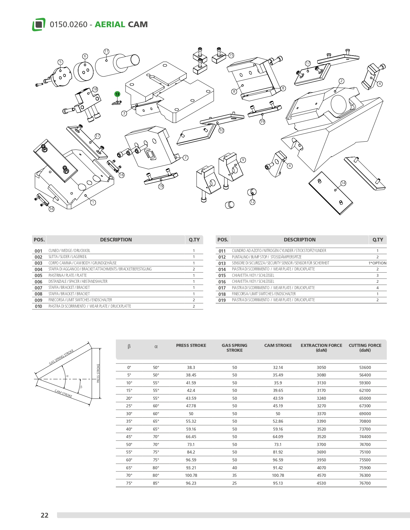 Carros mecánicos de hasta 120200 daN con retorno a través de cilindros de nitrógeno, sobre el que se aplican accesorios como porta punzones, despegadores u otros tipos de útiles requeridos para los diferentes tipos de operaciones.