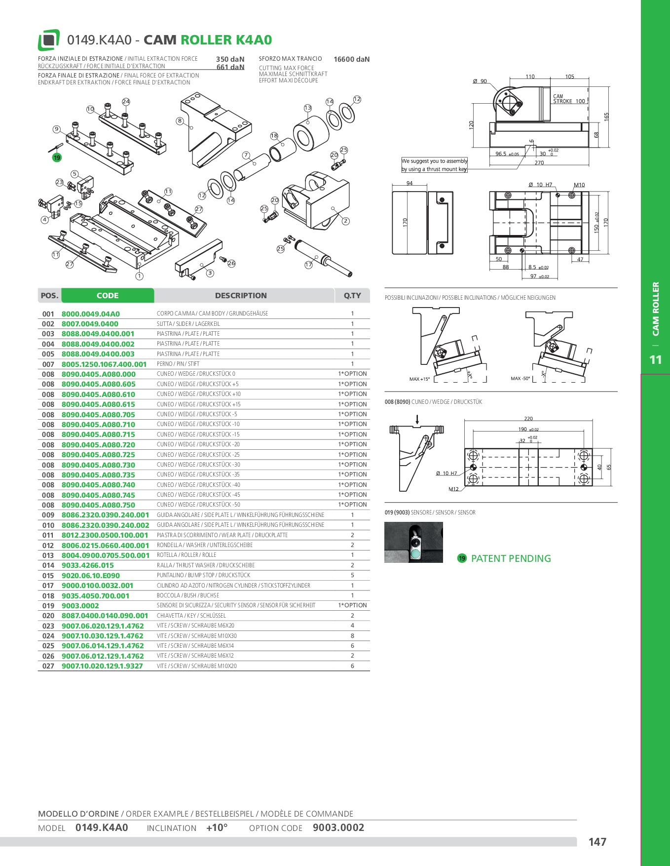 Carros mecánicos de hasta 25800 daN con retorno a través de un cilindro de nitrógeno, sobre el que se aplican accesorios como porta punzones, despegadores u otros tipos de útiles requeridos para los diferentes tipos de operaciones.