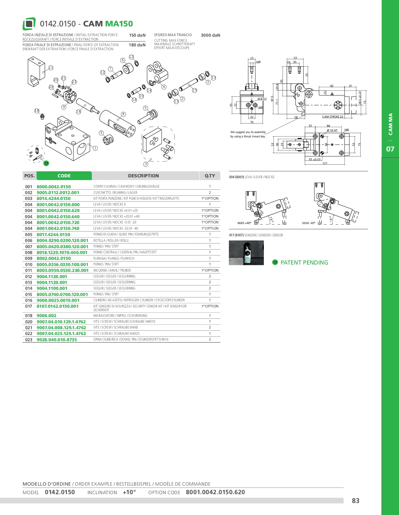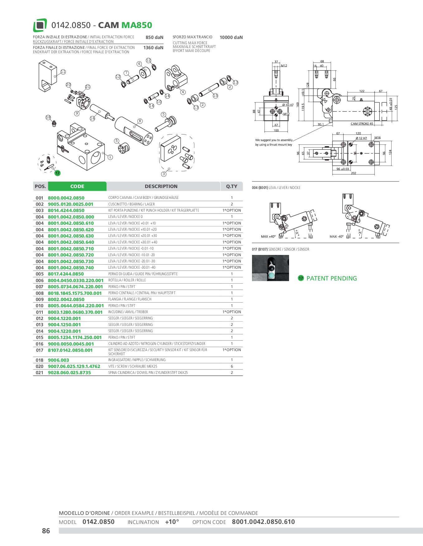 Camma meccanica di potenza fino a 10000 daN con ritorno garantito mediante una molla ad azoto, su cui vengono applicati gli accessori o gli acciai per eseguire le lavorazioni desiderate. È dotata di una struttura solida e compatta, al cui interno vi è un meccanismo antirotativo di posizionamento. Può essere montata in posizione orizzontale o inclinata (previo confronto con l’ufficio tecnico Newstark).