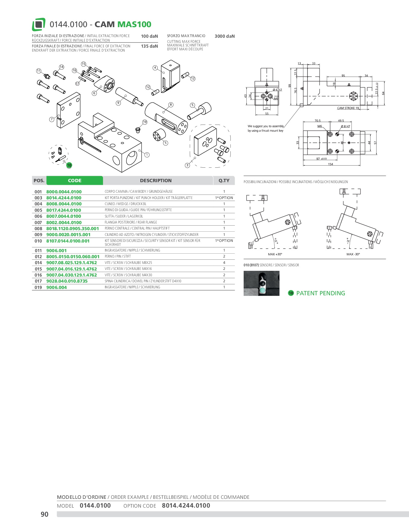 Camma meccanica, di potenza fino a 19000 daN con un ritorno garantito mediante una molla ad azoto, su cui vengono applicati gli accessori o gli acciai per eseguire le lavorazioni desiderate. Il moto è trasferito mediante cunei inclinati ed è dotato di un sistema antirotativo.